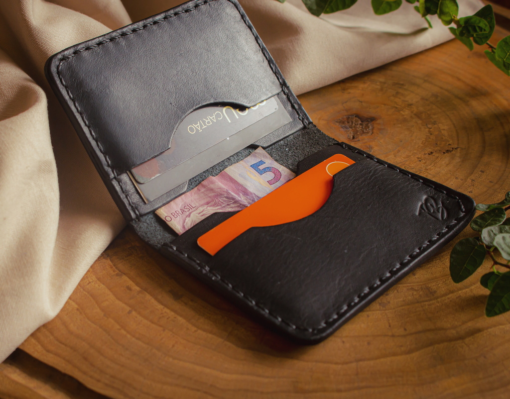 Nossa Carteira Oregon possui 4 compartimentos para até 4 Cartões, CNH e Notas (Dobradas)