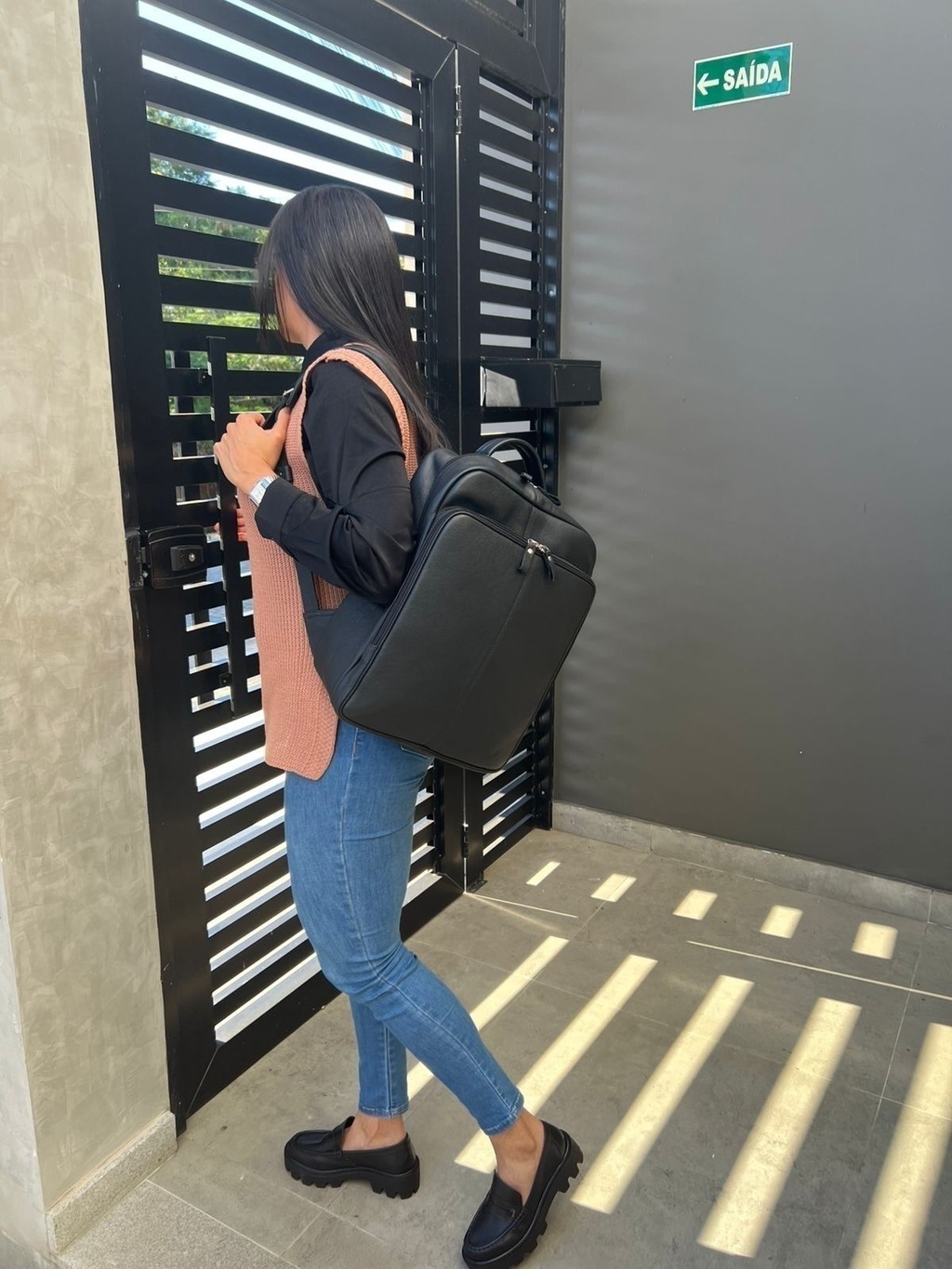 Cada detalhe foi reforçado para durar: costuras triplas internas, zíperes robustos e alças ergonômicas acolchoadas, que distribuem o peso com conforto mesmo em longos trajetos. Com dimensões de 41 cm (altura) × 31 cm (largura) × 16 cm (profundidade).