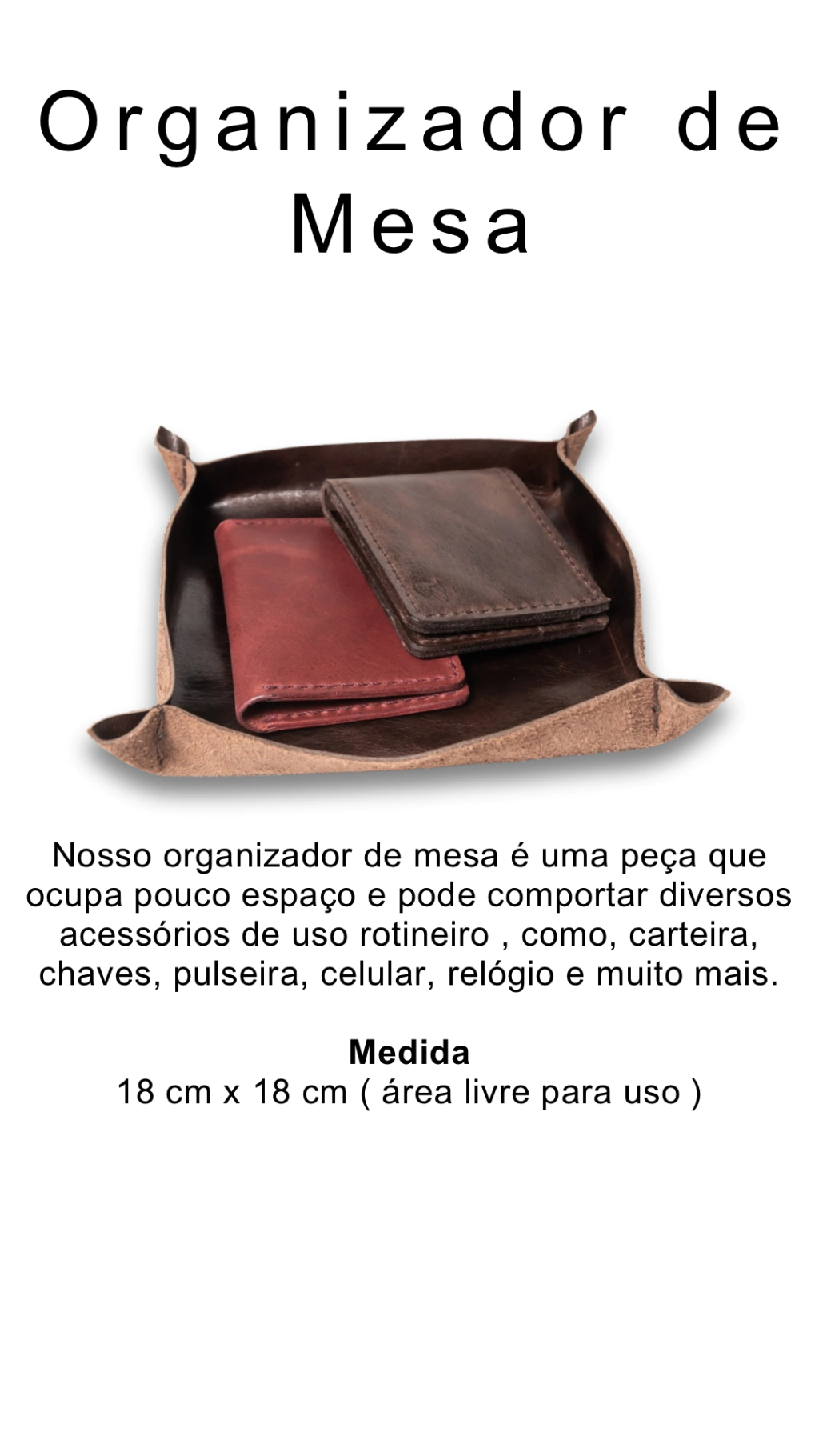 Compacto e funcional, o Organizador de Mesa acomoda carteira, chaves, celular, relógio e outros objetos em um espaço de 18 cm x 18 cm (area útil), sem ocupar muito do seu ambiente.